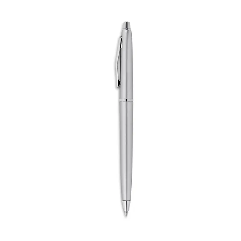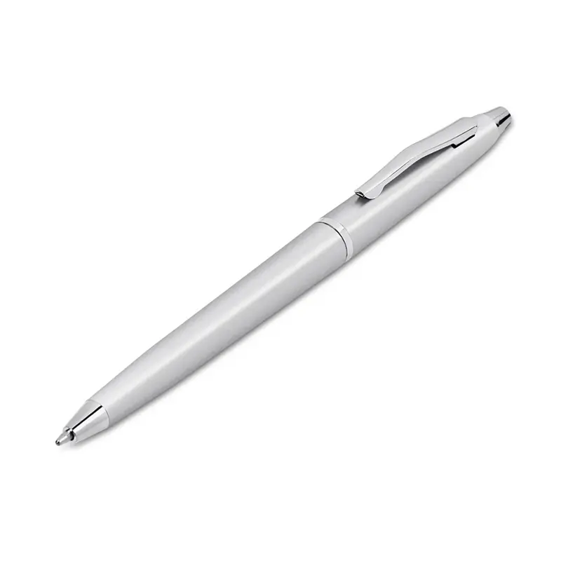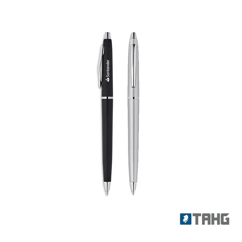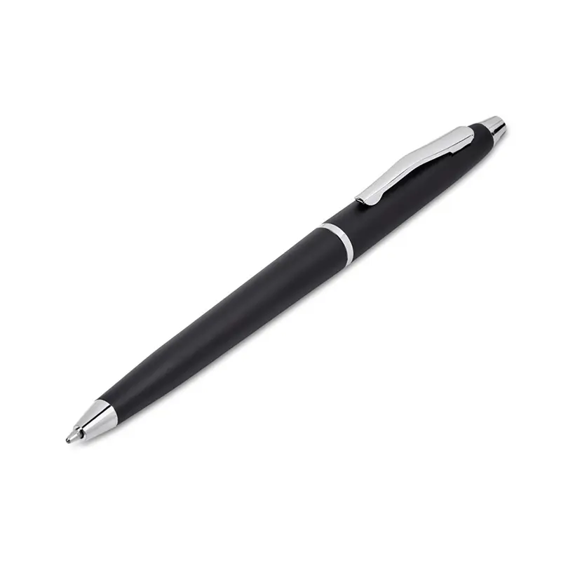 Bolígrafo de acción giratoria fabricado en plástico ABS con clip metálico y anillo medio.