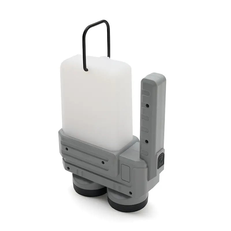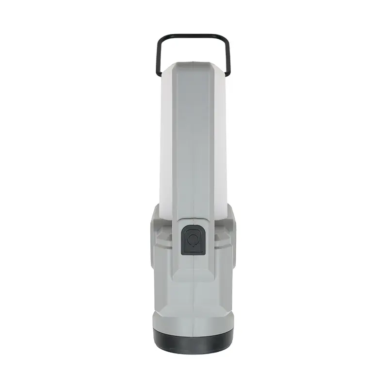 Lámpara fabricada en ABS + PP. Su diseño versátil ofrece dos tipos de agarre: una manija ergonómica para un mejor control en modo linterna y una manija tipo «cuerda», ideal para colgar y utilizar como farol.