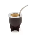 Mate de calabaza natural dedicadamente seleccionada y pulida, montada sobre un pie de acero niquelado.